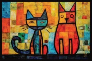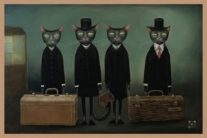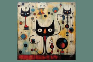 This painting is perfect for any cat lover or anyone who appreciates whimsical and fun art. Hang it in your living room, bedroom, or office to add a touch of whimsy and charm to your space.